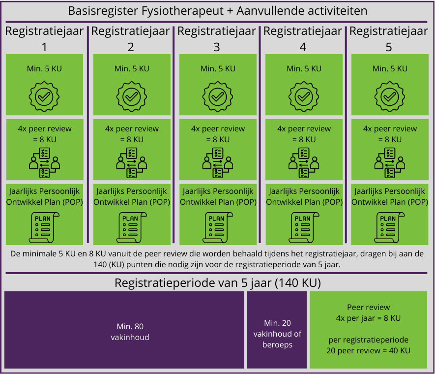Hieronder ziet u een overzicht wat de vereisten zijn per jaar voor een individuele fysiotherapeut.